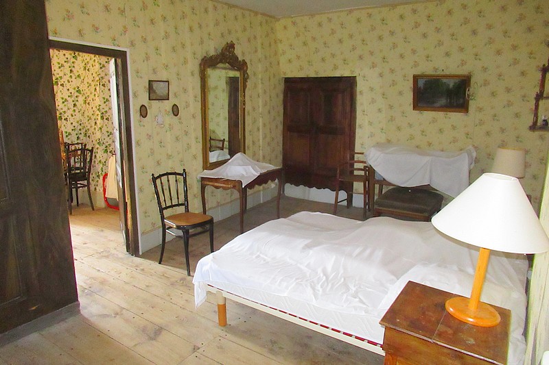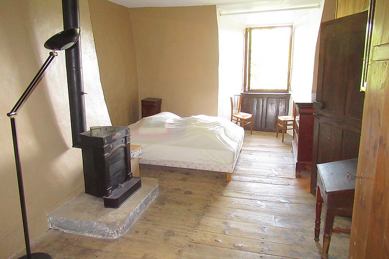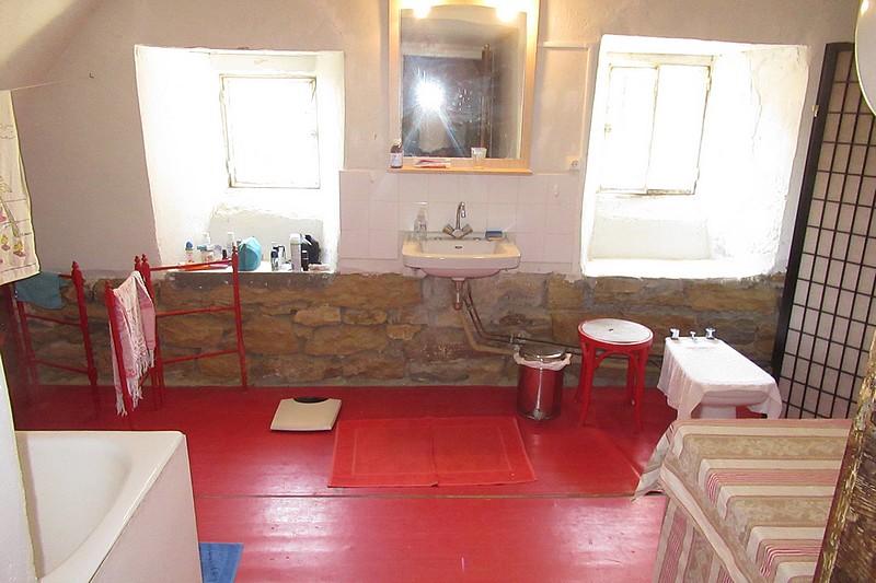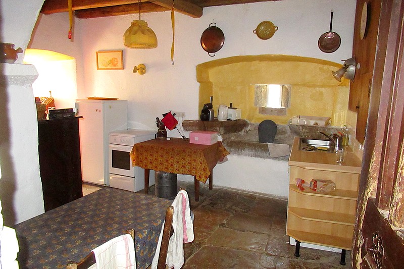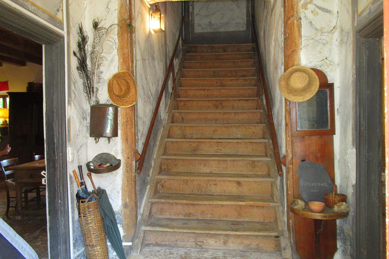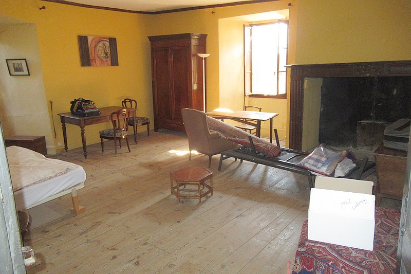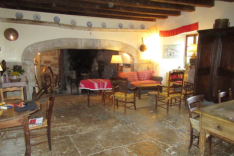 -RdC : un perron, une salle à vivre avec cheminée “cantou” et dallage en pierre de 60 m², une cuisine et un salon/chambre de 40 m²